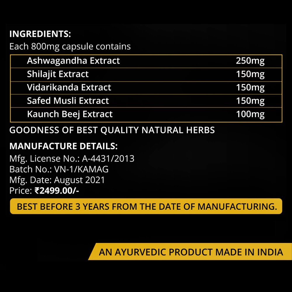 Vedic Nature's Kama Gold is an all-in-one solution for all your sexual health related issues. This is a special formula which will boost your metabolism, which will in return help increase your stamina. Our high-quality herbs help your body to boost testosterone levels which in return helps increasing the natural capabilities of men's health.INGRED..